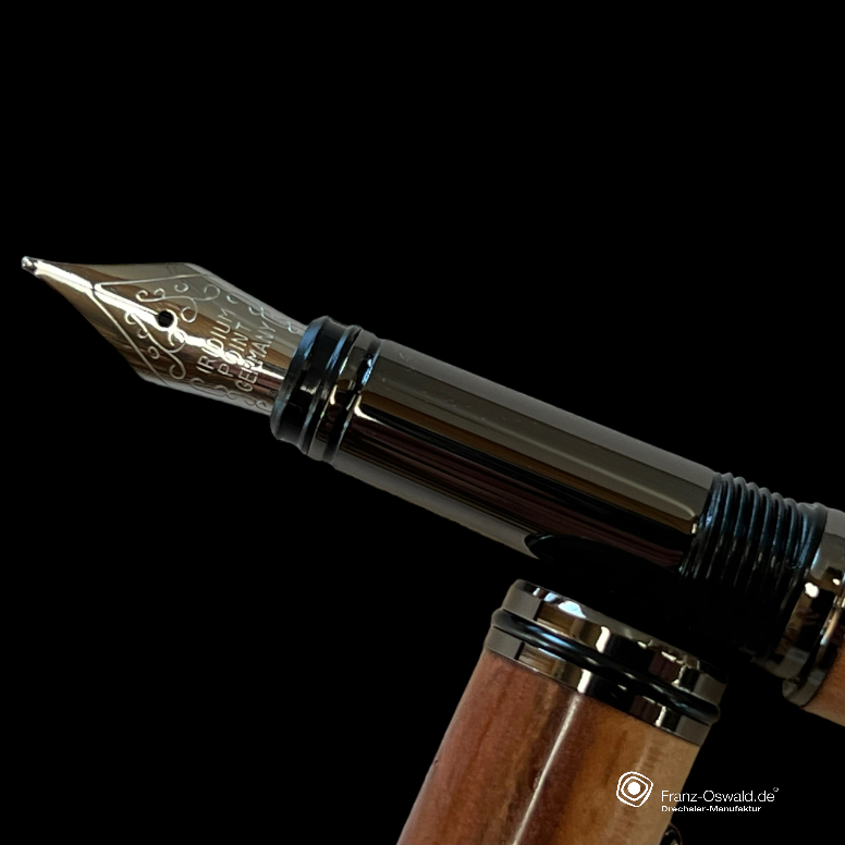 Die hochwertige mittelgroße Feder ist Made in Germany und ist vorne mit einem besonders harten Iridium-Punkt bestückt. Das garantiert lange Lebensdauer und viel Schreibvergnügen.